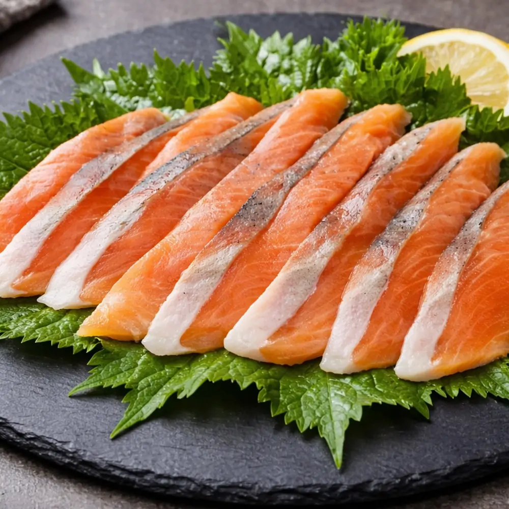 鮮潮精選新鮮鮭魚切片,厚薄均勻,涮煮火鍋最佳