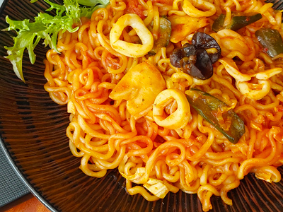 ■海鮮辣雞麵(約10分鐘): 作法: |
