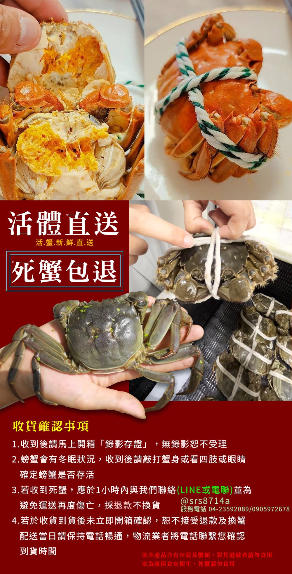 開箱前請務必錄影,若有「死蟹」請確定隻數: